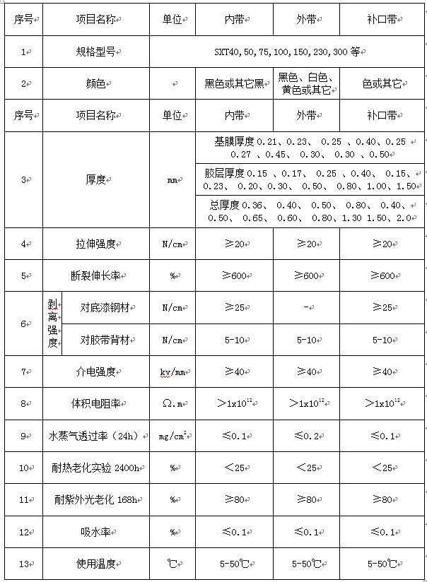 4、膠帶單層纏繞即可實現(xiàn)SY/T0414-98標(biāo)準(zhǔn)要求的普通或加強(qiáng)級防腐。改變了傳統(tǒng)膠帶需多層纏繞,減少了防腐作業(yè)過程中人為因素對防腐質(zhì)量造成的影響,降低了施工費用。